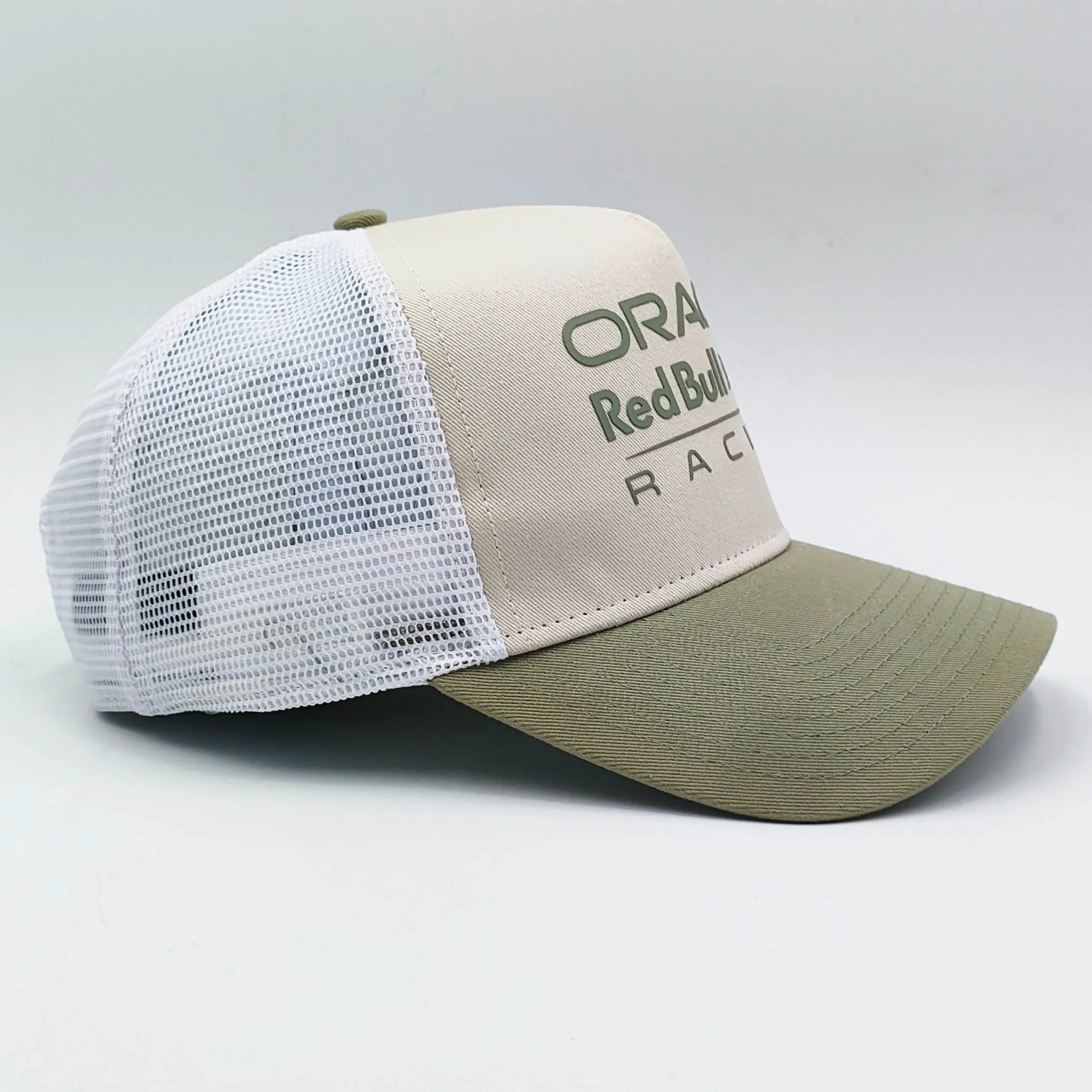 The Oracle Red Bull Racing White Mesh Trucker Cap — a perfect fusion of motorsport heritage and modern streetwear. Designed with a clean cream front panel and finished with the iconic Red Bull logo, this cap delivers a bold yet refined aesthetic.