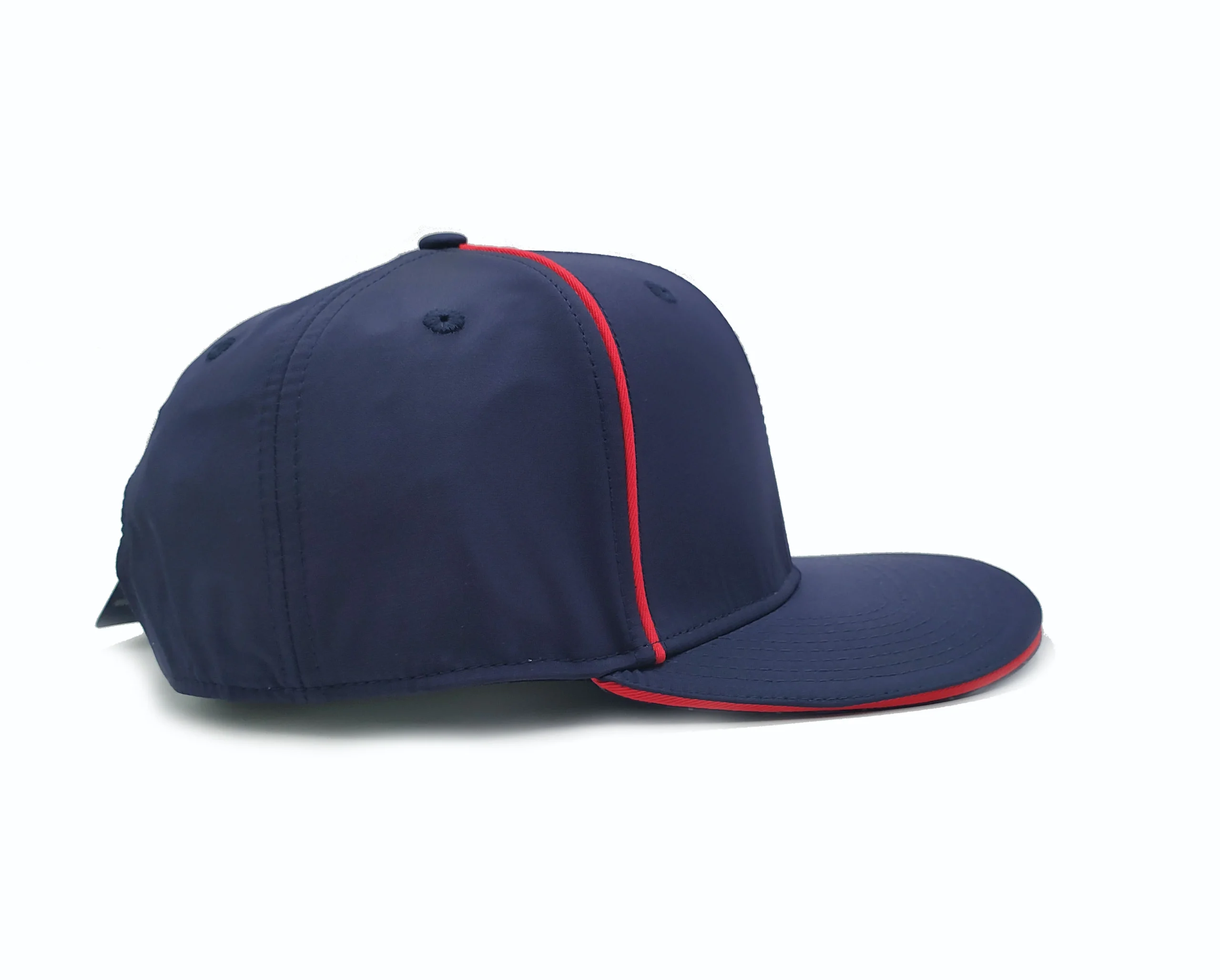 Change your motorsport style into 8th gear with this premium Oracle Red Bull Racing flat brim cap, finished in deep navy blue with bold red detailing inspired by the colours of the Oracle Red Bull Racing team. The front panel features the iconic Oracle Red Bull Racing logo on the left side, while the side proudly displays the embroidered New Era flag. Red trim around the front panels and sandwich brim adds a sharp race-ready contrast, and the underside of the brim features a distinctive chequered diagonal pattern.