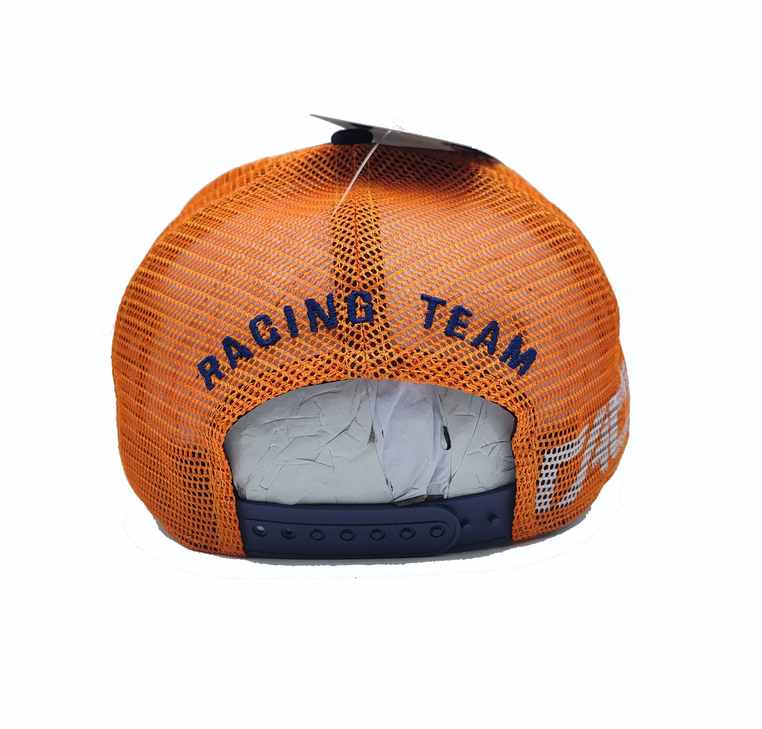 - Bright orange breathable mesh rear crown